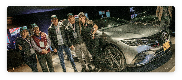 - Formación de equipos, asignando a cada grupo un vehículo Mercedes-AMG eléctrico para la travesía.